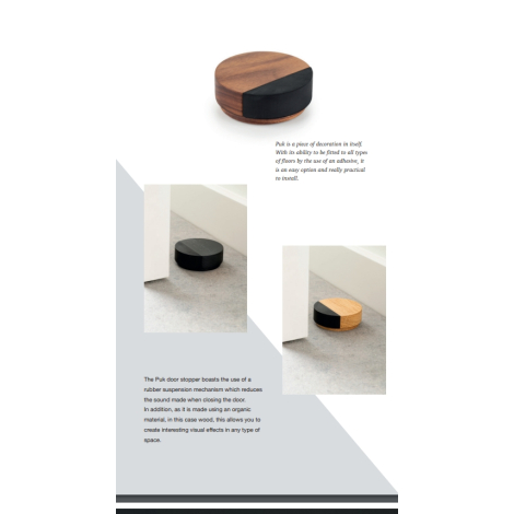 Puk 本身就是一件裝飾品。它能夠透過使用黏合劑安裝到所有類型的地板上,是一個簡單的選擇,而且安裝起來非常實用。此門吸採用橡膠懸掛機構,可減少關門時發出的聲音。此外,由於它是使用有...Read More