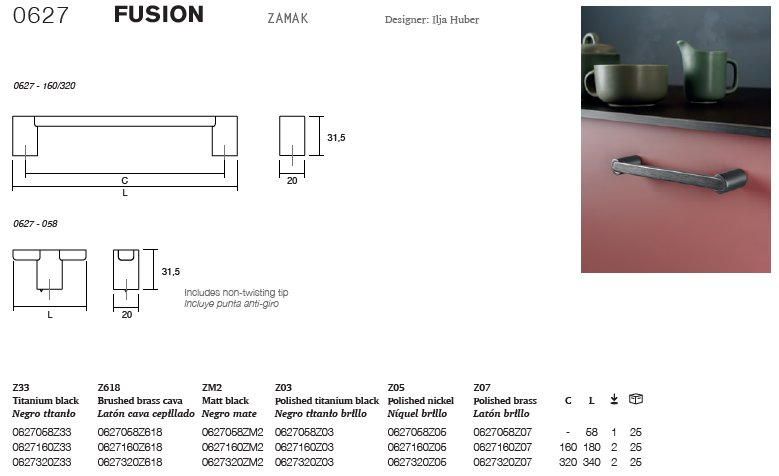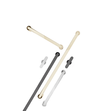 Fusion 是一款現代、優雅且用途廣泛的鋅合金把手,適用於浴室。它提供六種飾面可選:鈦黑、消光黑、拉絲黃銅、拋光鈦黑、拋光鎳和拋光黃銅,完美契合最新的室內設計趨勢。這款把手採用底座和把手兩部分融合而成的設計,賦予其精準優雅的質感。把手使用起來非常舒適,較低的弧度使其易於抓握,而其重量則確保了其堅固性和安全性。旋鈕式把手配有防旋轉頂端。