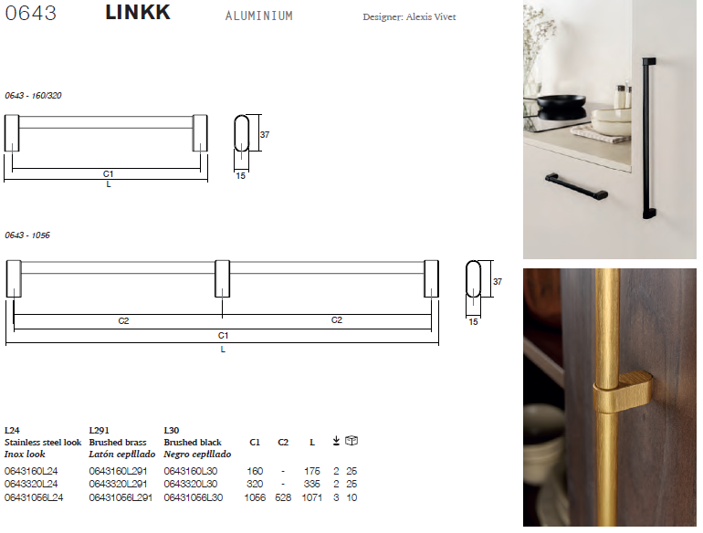 Linkk 把手以其簡約的底座為特色,可輕鬆安裝在廚房和浴室的抽屜和櫥櫃上。圓潤的角落設計使其外觀精美,能夠輕鬆融入各種家具風格,從經典到前衛皆可駕馭。憑藉完美平衡的設計,其三種飾面—不銹鋼外觀、拉絲黃銅和拉絲黑—能夠完美融入最挑剔的室內裝潢。