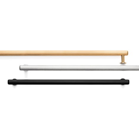 Rille 手柄有不銹鋼、深色拉絲黃銅和拉絲黑色可供選擇,非常適合為所有類型的區域增添現代感。它具有優雅的外觀、曲線和最大的功能。長款可以適應需要更多存在感和堅固性的鄉村環境,以平衡臥室、客廳或廚房中的其他元素。儘管存在鋁,但它卻使其輕巧且實用。其設計融入了最新趨勢的補充。