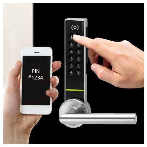 Bei der Online-Zimmer-Bestellung wird dem Gast ein für die gebuchte Aufenthaltsdauer gültiger PIN-Code per Email oder SMS auf sein Smartphone gesendet. Diesen Code kann er direkt am Hotelzugang mit dem SAFE-O-TRONIC® access TS Wandterminal und / oder am SAFE-OTRONIC access DS Türbeschlag eingeben und das Gastzimmer betreten