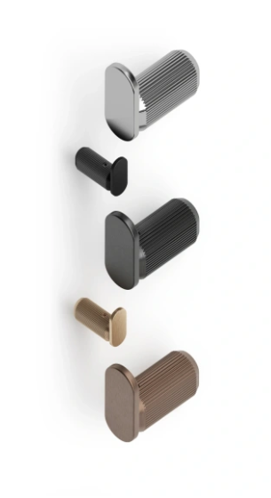其水位線條勾勒出工業風的質感,在廚房、浴室甚至任何空間都能帶來令人過目難忘的視覺饗宴。此衣鉤提供兩種尺寸:40mm 和 70mm,其中 70mm 型號更具裝飾性,尤其適合大空間。在同一空間內也可混搭兩種尺寸,既能保持美觀的協調性,又不失實用功能。