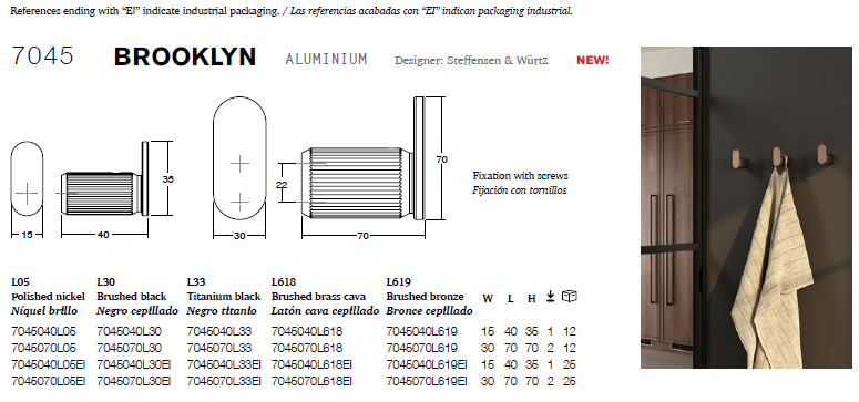 Brooklyn 衣鉤用途廣泛且可輕鬆融入各種環境和風格。其設計兼具優雅氣質與建築美感,是提升室內設計風格的理想選擇。