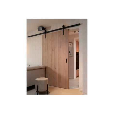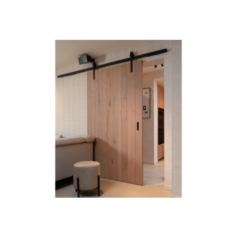 完全平整的輪廓可防止滾動時塗層受損。 POM軸承輪確保運轉安靜順暢。多個粉末塗層牆壁支架用於將輪廓固定在牆上,包括一個加厚塊,可將門與牆壁之間的距離從10 mm 調整到15 mm。