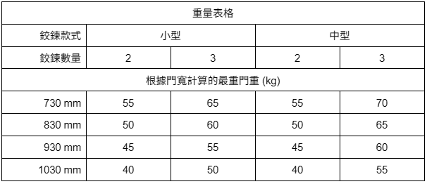 門重表格