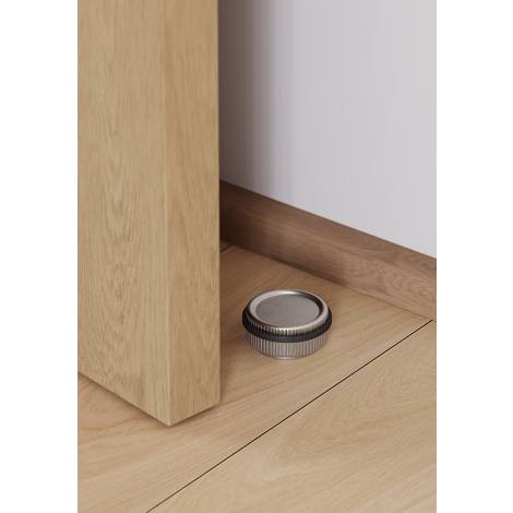這款 Boto 門擋採用鋁製材料,兼具強度、設計感和精緻實用的外觀。其獨特的圓柱形設計,表面帶有微妙的棱紋,賦予其獨特的個性;黑色橡膠防撞圈則能有效抵禦各種環境下的強烈衝擊。 Boto 門擋提供拉絲黑、拉絲黃銅、拋光鎳、不銹鋼和拉絲青銅五種表面處理可選,可透過螺絲或黏合劑固定在地面上,安裝靈活便捷,並帶來優雅的視覺效果。