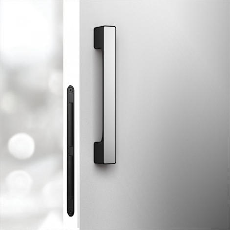 一字型中把手,可依門扇的表面材質貼附在門把內,達到隱形的視覺效果